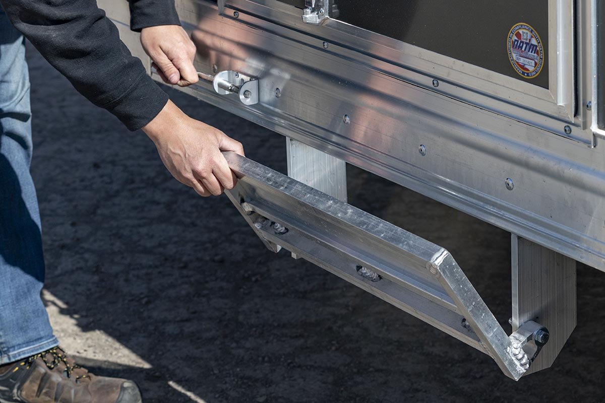 Easily access your trailer through the side door with this all-aluminum step that conveniently folds out of the way when not in use.