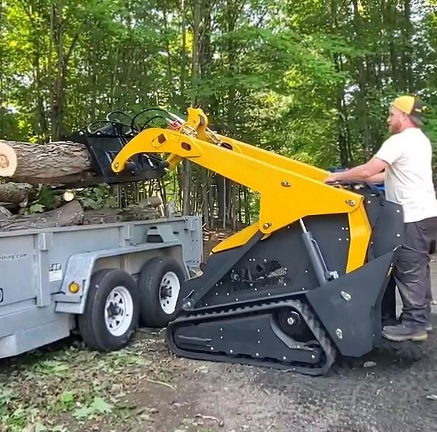 Derette V1000 Mini Skid Steer Loader with hydraulic grapple is the all-round solution for engineering tasks!Derette v1000 skid steer loader with hydraulic grapple is used in a wide variety of work environments, including construction sites, agriculture, forestry and more. The hydraulic grapple makes it easy to transport timber and branches, as well as other items, to the appropriate location. It improves work efficiency to a great extent.