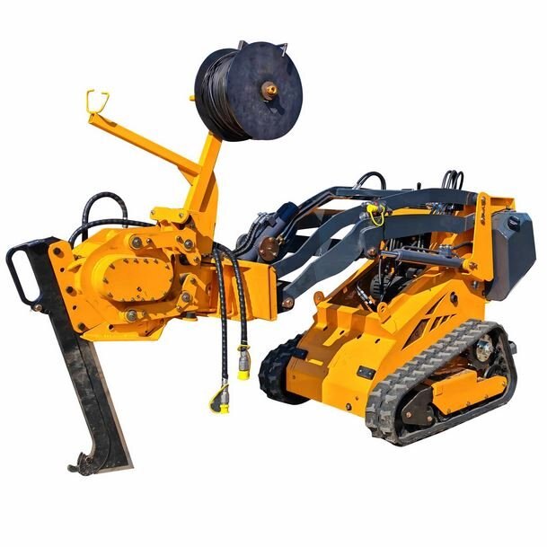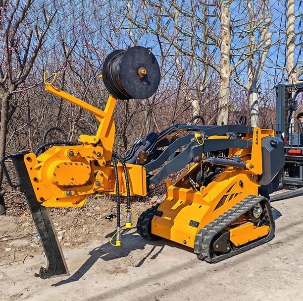The vibration plow attachment is a powerful assistant for the Derette 450T, with its core highlights being remarkable:Efficient Grooving: The blades are installed in the vibration box and move back and forth at a high speed, easily cutting out narrow grooves. With the assistance of vibration, the blades can penetrate the soil more smoothly. It digs faster and requires less manpower compared to traditional plows. When laying small cables or pipes, its advantages are fully demonstrated, as it can quickly create grooves for laying the cables or pipes. Reduced Damage: The grooves are narrow, causing little damage to the ground surface. After the construction, simply rolling over the grooves several times with tractor tires can basically restore the ground to its original flat state. There is no need for large-scale backfilling and ground restoration like in traditional trench digging, which effectively protects the surrounding environment and landscape of the construction site. Convenient Installation: It is widely used for laying small underground facilities such as irrigation systems, various types of cables, low-voltage power lines, drainage pipes, and gas pipelines. During the operation, as the vibration plow moves forward, the cables or pipes can be smoothly placed into the grooves with the help of reels and other devices, making the installation efficient and convenient.