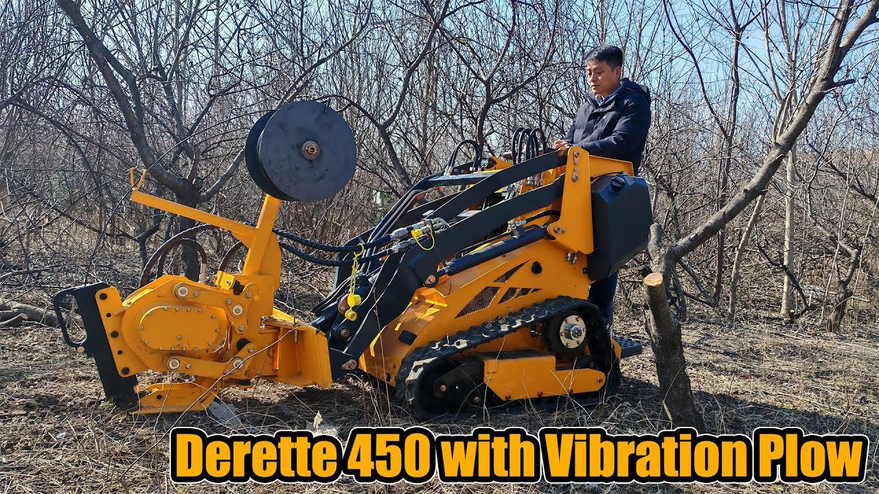 The Derette 450T Mini Skid Steer Loader with Vibration Plow Attachment offers precise and efficient ground preparation for tasks like laying pipes or cables. Its vibration plow ensures clean trenching, while the loader’s compact design allows for easy maneuverability in tight spaces. Perfect for landscaping, construction, or utility work, it provides reliable and versatile performance. |