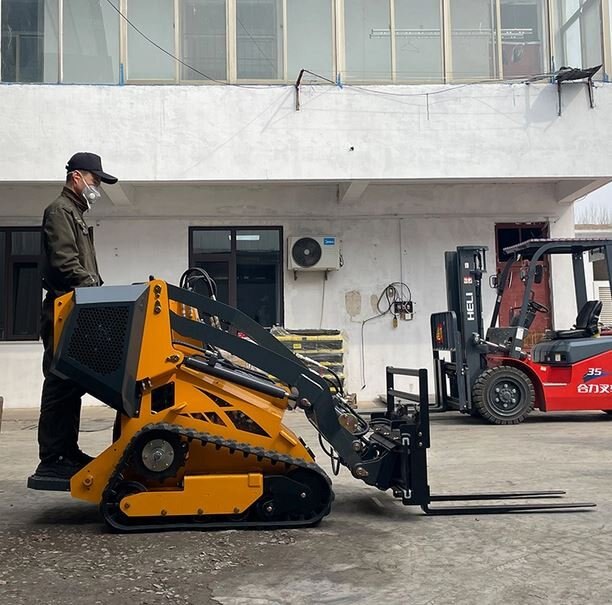 Derette 450T Mini Skid Steer Loader with Side-shifting Forks AttachmentThe Derette 450T Mini Skid Steer Loader (Chinese mini skid steer) equipped with side-shifting forks is a highly flexible and efficient tool designed to meet the material handling needs in tight or confined spaces. As a piece of earth-moving machinery within the category of mini loaders, this configuration significantly enhances operational efficiency and precision by allowing fork movements from side-to-side without repositioning the entire machine, making it ideal for tasks requiring accurate material placement. This crawler type ride on driving skid steer not only provides excellent maneuverability but also ensures stability on complex terrains. |