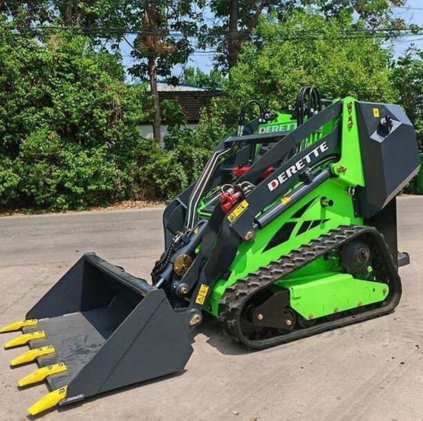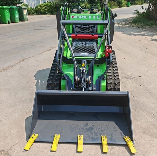 Whether you are a professional landscaper, waste recycler, logger, or construction contractor, the Derette 450T Mini Skid Steer Loader with Fork is an invaluable investment. It significantly improves material handling efficiency. Experience the stability provided by its tracked design, the strength of its powerful lifting capacity, and its outstanding performance, ensuring excellence in any material handling task.