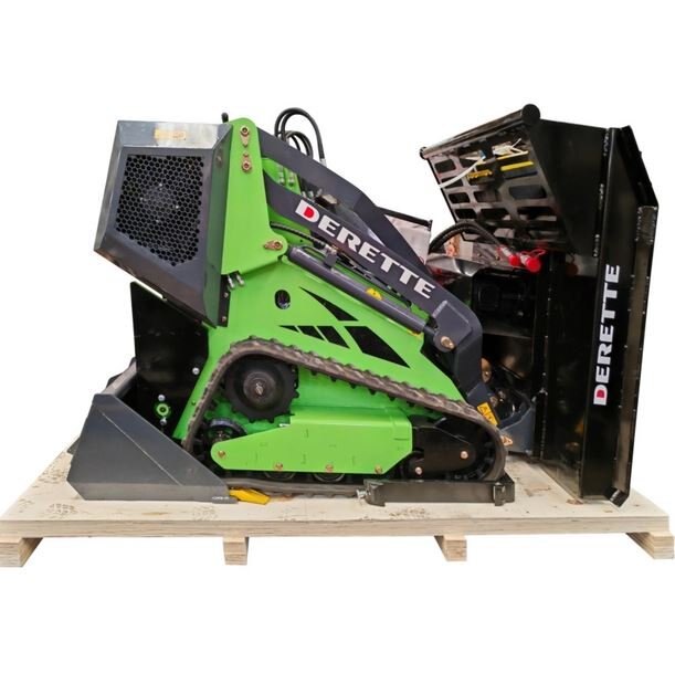 Derette 450 mini skid steer loader is equipped with a brush cutter capable of clearing grass weeds, shrubs, tree branches, and adjusts its own height.Whether you're trimming thick bushes, clearing weeds, or landscaping, this compact skid steer loader excels at meeting your high standards of quality and efficiency in landscape maintenance. |