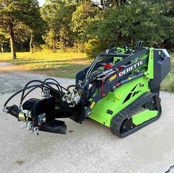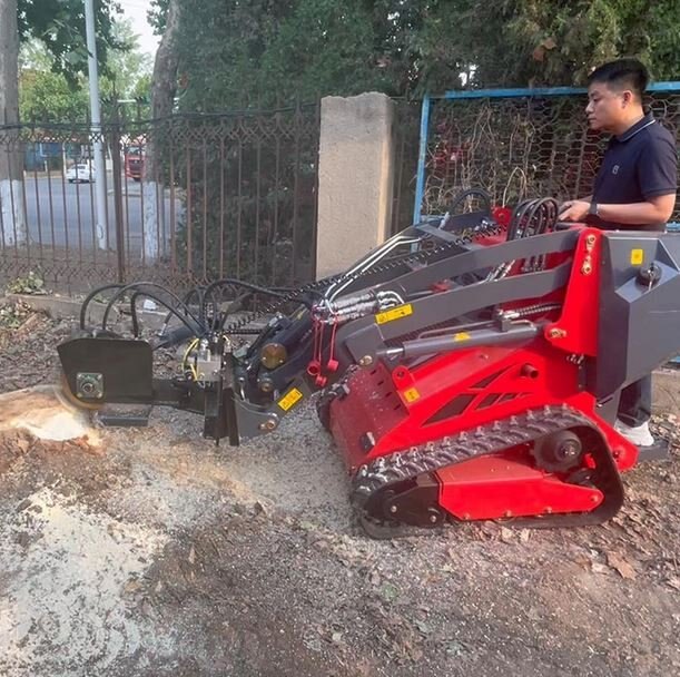 Derette 450T mini skid steer loader with Stump Grinder attachmentsDerette 450T mini skid steer loader is now equipped with a powerful stump grinder attachment that grinds stumps from the ground into powder. Rugged and compact, this machine is ideal for efficiently clearing your land. |