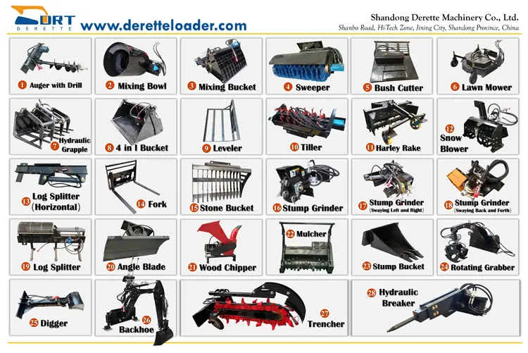 Conclusion:The Derette 450T Mini Skid Steer Loader with a backhoe attachment offers exceptional digging capabilities and versatility. Whether you need to dig trenches, prepare foundations, or handle landscaping tasks, this loader provides the precision and efficiency required for high-quality results. Its compact design ensures it can maneuver easily in tight spaces, making it an excellent choice for both professional contractors and DIY enthusiasts seeking a reliable and high-performance mini skid steer loader. |