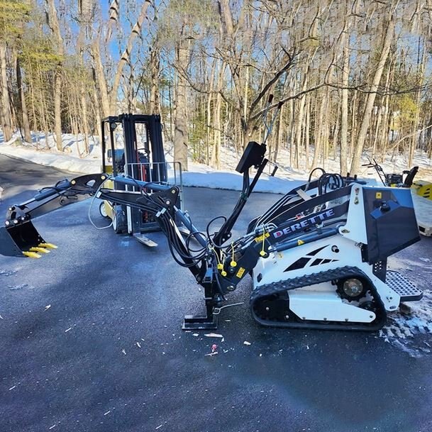 | The Derette 450T Mini Skid Steer Loader with a backhoe attachment is a versatile and powerful tool designed for efficient digging and excavation tasks, ideal for landscaping, trenching, foundation work, and various construction projects. It features an impressive max digging depth of 39 inches and maintains high performance in tight spaces thanks to its compact design. This loader can also be equipped with various attachments, making it highly adaptable for tasks ranging from material handling to grading. Whether for creating garden beds, laying pipes, or digging foundations, the 450T offers the precision and efficiency needed for high-quality results, making it perfect for both professional contractors and DIY enthusiasts seeking a reliable mini skid steer loader. |