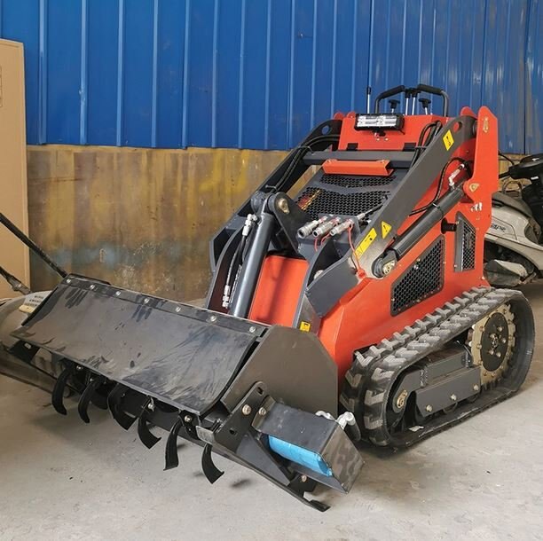 High Efficiency: The tiller attachment can quickly and effectively handle various types of soil, significantly improving work efficiency and reducing the time required to complete tasks. Enhanced Terrain Adaptability: Whether on hard soil or complex terrain, the loader equipped with skid loader tracks maintains excellent mobility and stability. User-Friendly Design: An intuitive operating interface reduces learning time and enhances overall work efficiency, making operation more convenient. Versatile Applications: Ideal not only for landscaping projects but also for agricultural cultivation, offering a versatile solution. Additionally, a variety of skid steer tracks for sale are available on the market to meet different job requirements. The Derette 430T Mini Skid Steer Loader with its tiller attachment combines advanced technology with practical design, offering unparalleled versatility and performance. Whether for preparing garden beds or tilling farmland, this loader ensures efficient and precise operations. Choosing the Derette 430T means opting for excellence in performance and reliability in any project. |