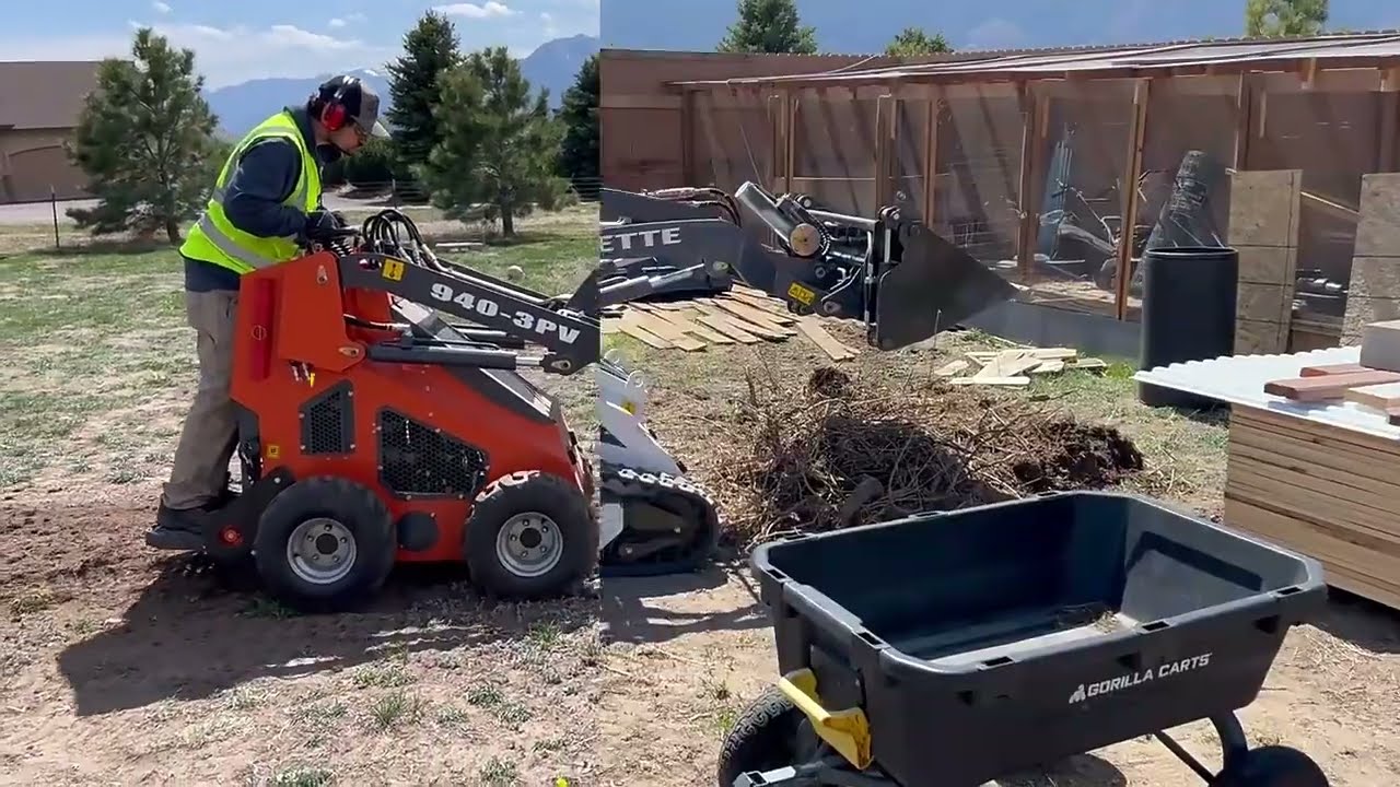 | Equipped with a tiller attachment, the Derette 430T Mini Skid Steer Loader becomes a powerful tool specifically designed for efficient soil cultivation. This configuration is particularly suitable for precise operations in confined spaces, such as gardens, farms, landscaping projects, and urban greening management. The tiller attachment can quickly and evenly loosen the soil, preparing planting beds to ensure that plant roots have ample space to grow while improving soil aeration and moisture retention. |