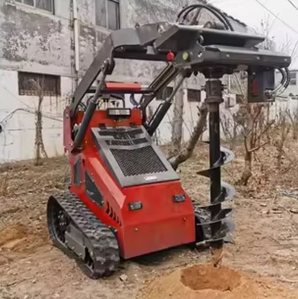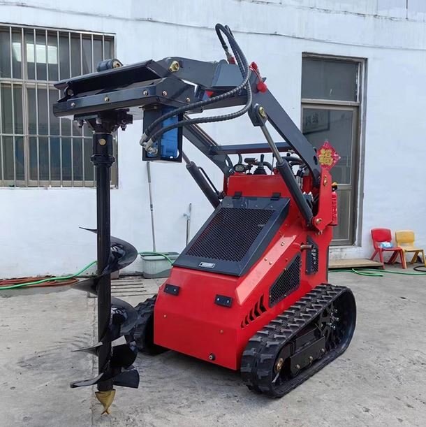 Derette 430T mini skid steer loader with AugerAn Auger is a common attachment for a skid steer loader, primarily used for drilling holes. This tool is very useful in construction, agriculture, landscaping, and other applications where hole drilling is required. The design of an Auger enables it to efficiently penetrate soil or other soft materials, making it suitable for a range of tasks such as fence post installation, tree planting, sign setting, and more.