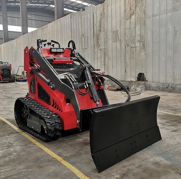 Derete 430T mini skid steer loader with Angle Blade attachments
