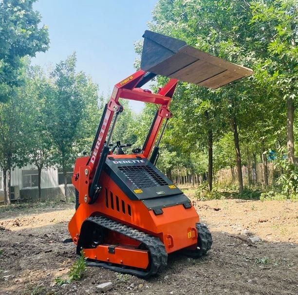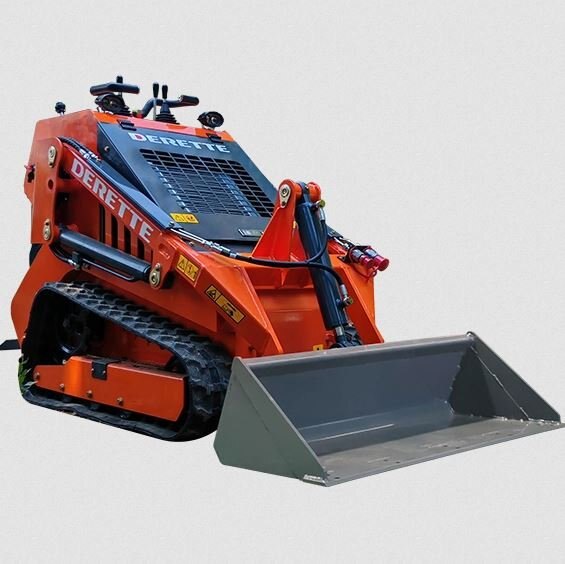Derette T800 mini skid steer loader with Standard BucketA mini skid steer loader is a compact version of the larger skid steer loader, designed for maneuverability in tight spaces. A standard bucket is one of the most common attachments for these machines, used for a variety of tasks including digging, loading, and moving materials. |