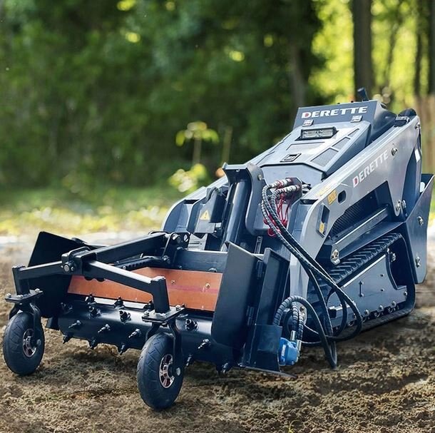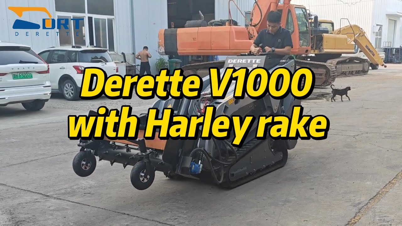 Choose our Harley Rake Attachment to get the most out of your Derette v1000 compact skid steer loader for every project. Buy now and experience the convenience of working like never before!