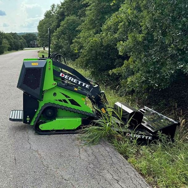 Derette Brush Cutter for mini skid steer loaderThe Brush Cutter is specifically designed for clearing dense vegetation, trimming shrubs, and removing weeds. This equipment is highly efficient and flexible, making it a valuable tool in various environments.