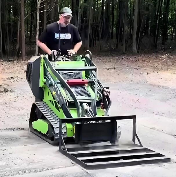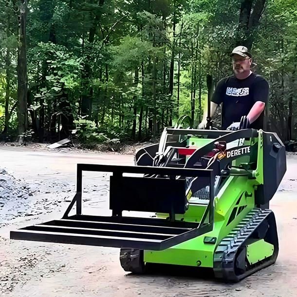 Derette Leveler for mini skid steer loaderThe Leveler is characterized by high speed, efficiency, precision, and versatility. It can handle large areas of ground leveling and tasks such as ditching, grading slopes, pushing earth, clearing snow, loosening soil, compacting, spreading materials, mixing, assisting in loading, and land clearing. It is an important piece of equipment in defense engineering, mine construction, road building, water conservancy, and agricultural improvement.