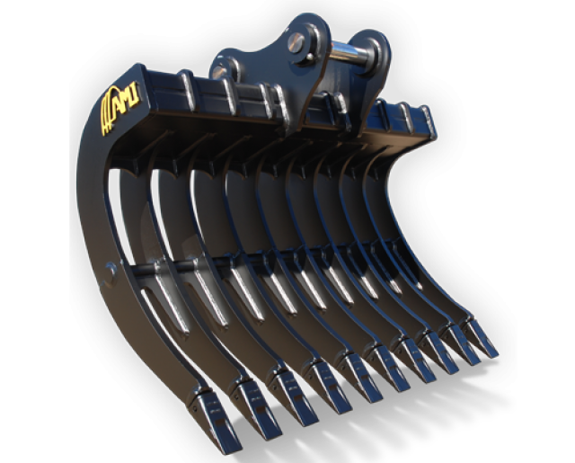 The AMI Root Rake is a powerful tool that clears away unwanted roots, limbs and brush while leaving behind valuable soil. Operators are now able to clear away scrub more efficiently by reducing the amount of soil collected along with the brush. This allows for lower dumping and transportation costs and keeps the soil where it is needed. Built with AR400 steel tines, the AMI Root Rake is a solid tool that is ready to sweep its way through the toughest debris with minimal wear.