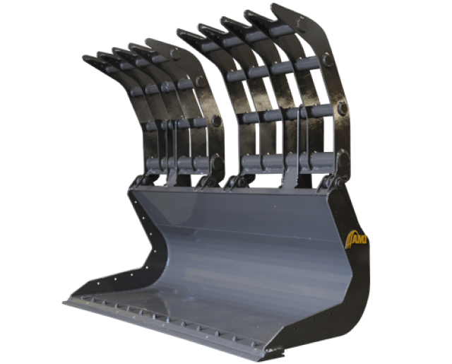 Pick apart steel, wood and concrete with the specially designed AMI Scrap grapple. The cutout sidewall profile allows large loads of awkward, oversized material while the heavy-duty grapples clamp the load secure.