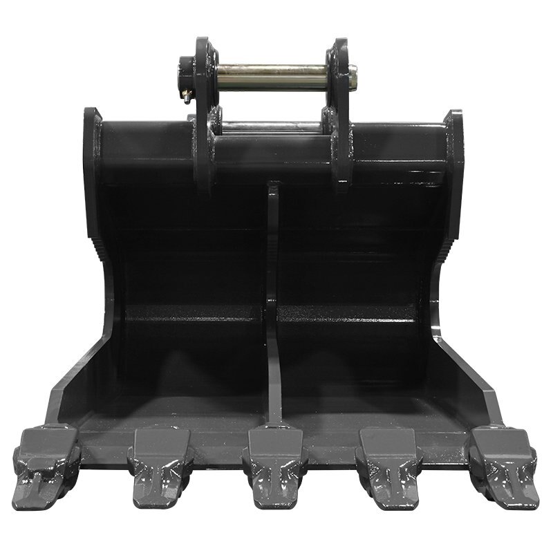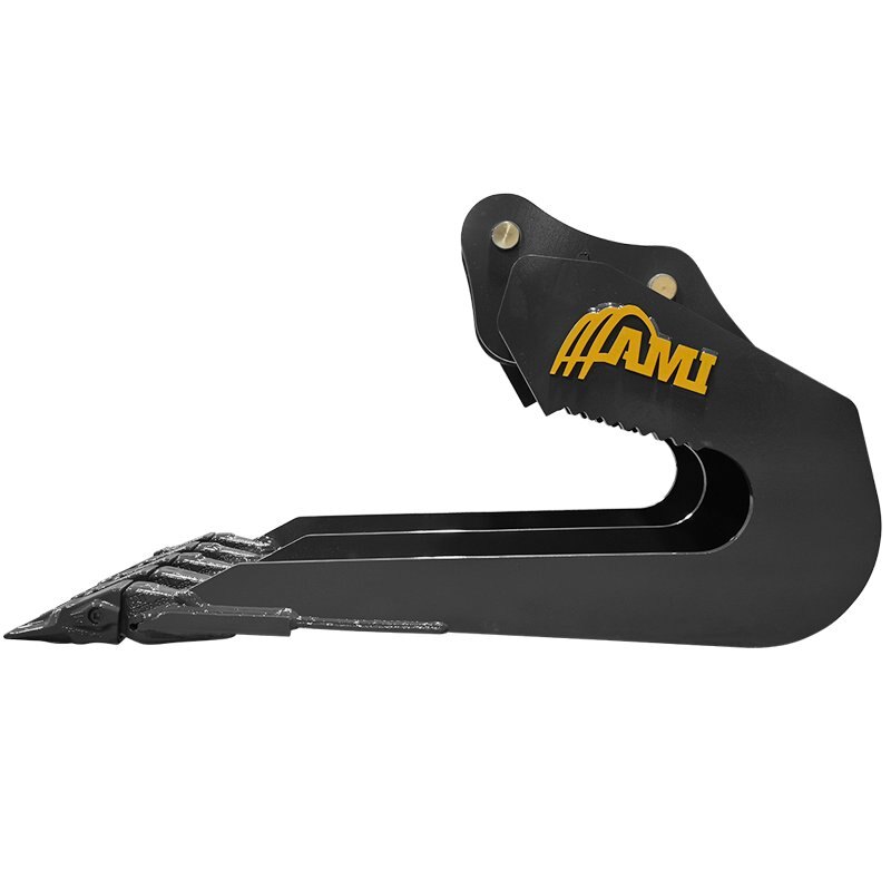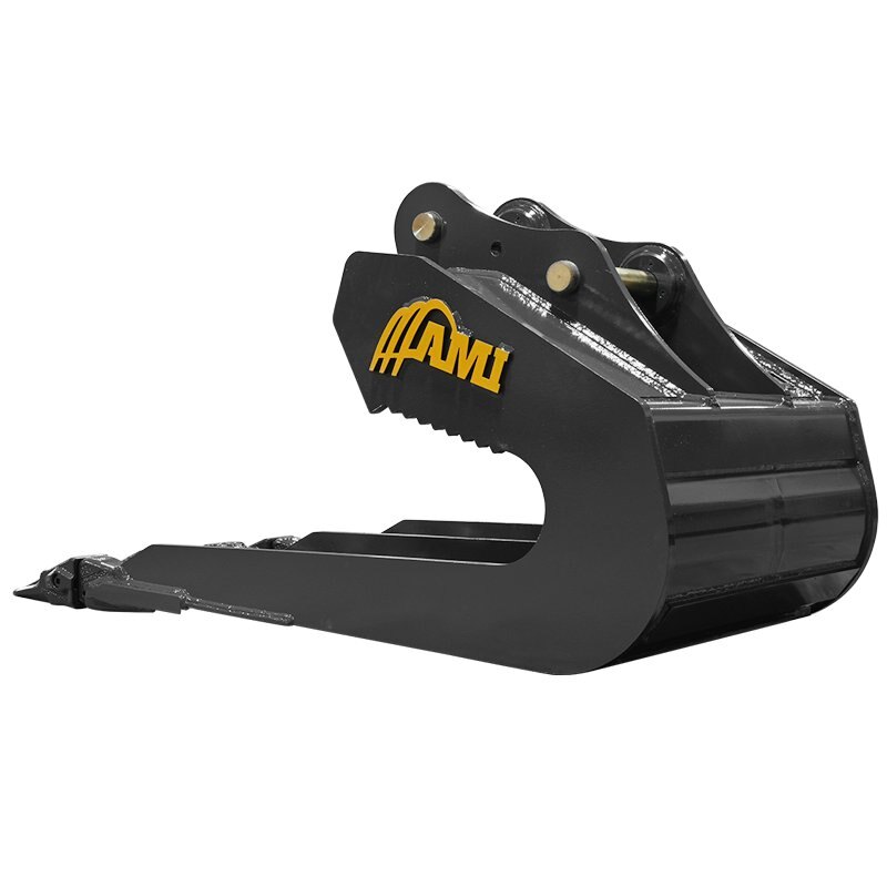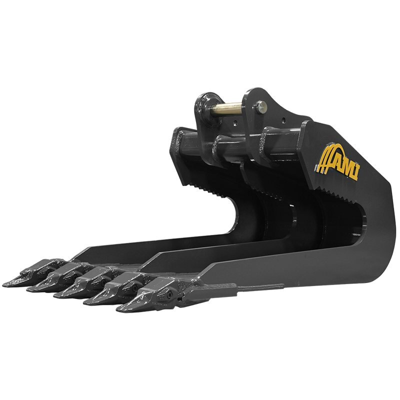 The AMI Slab Bucket for excavators and loader backhoes allows for efficient handling and maneuvering of blocks, concrete chunks, stone, and broken concrete. Ideal for sidewalks, pavement, and construction and demolition sites, the Slab Bucket features teeth for digging under stone slabs and a cut out endplate design for easy pick up and load retention.