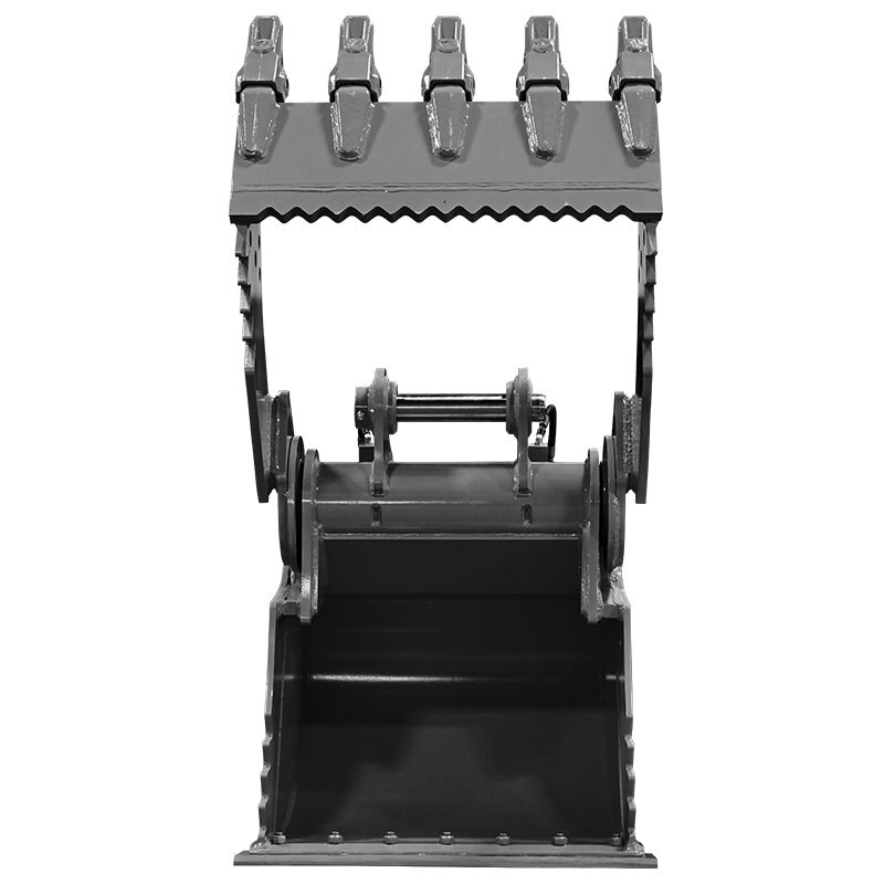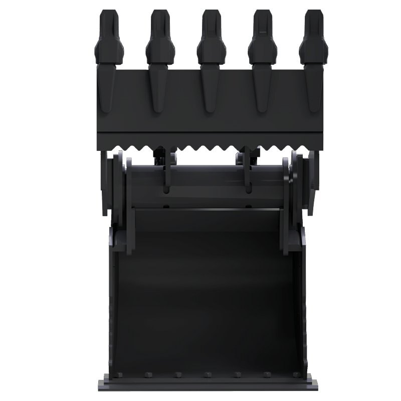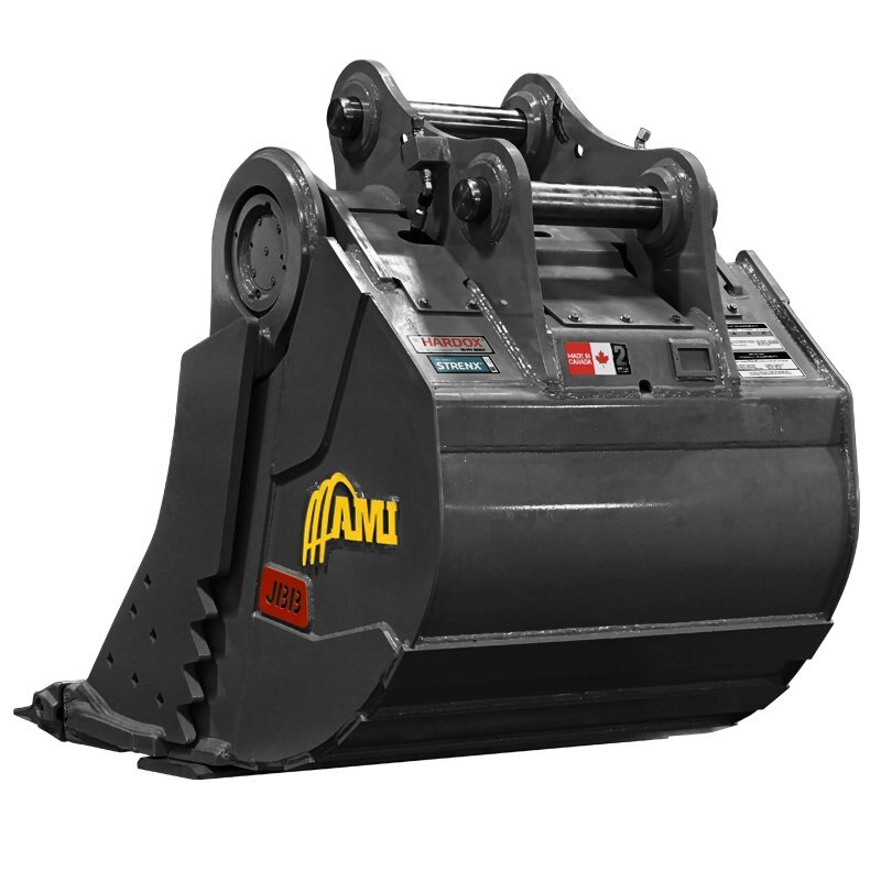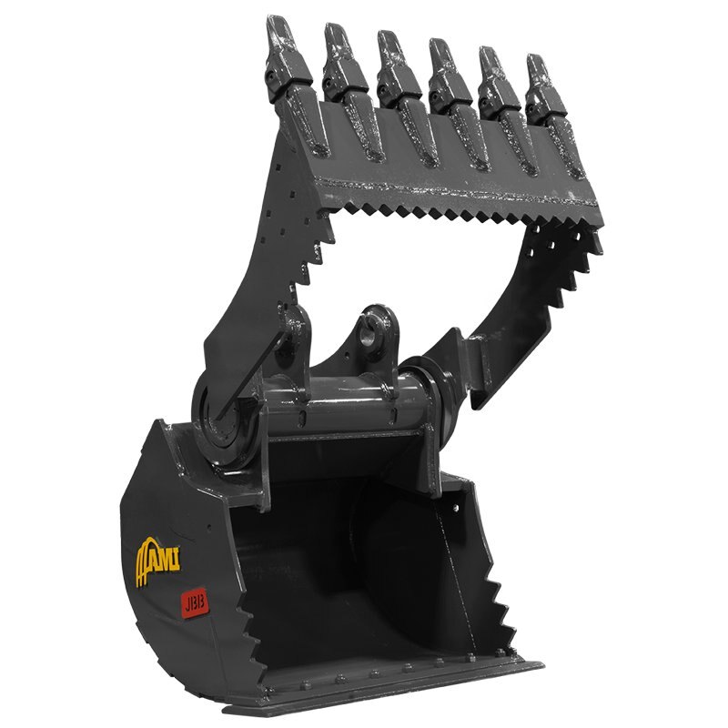 When multi-tasking is a must, the AMI Attachments Jawbone 4-in-1 Excavator Bucket responds with a multi-purpose design that digs, grades, grips and clamshells. At first glance, the AMI Jawbone excavator bucket looks no different than a regular digging bucket, however inside the crossbar is a powerful hydraulic rotary actuator. This provides all the power of a hydraulic cylinder-style thumb but without custom installation. With as much holding power and gripping strength as a thumb, the AMI Jawbone 4-in-1 Excavator Bucket handles logs, rocks and scrap easily. You can also switch between digging and ditching with the ability of two different cutting edges on one bucket. Now you can dig and grade without costing you downtime changing buckets. For swampy material handling, the AMI Jawbone Excavator Bucket also works as a clamshell bucket for loading and dumping straight down. |