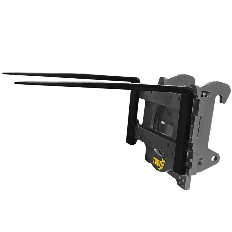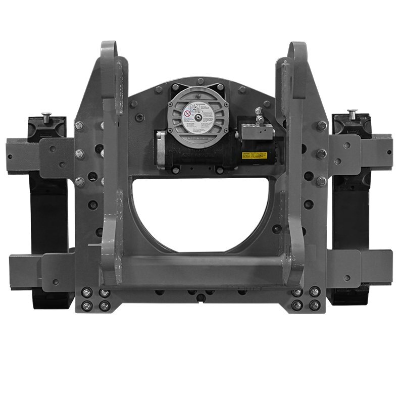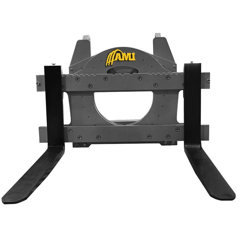 Rotating a full 360-degrees, the AMI Rotating Fork Rack is built to handle heavy side loads for dumping containers. The large slew-ring of the hydraulic rotator provides strength and smooth movement for tipping large loads. With heavy-duty tines bolted to the fork frame, your container stays in place and holds tight during the weight-shifting process of dumping.