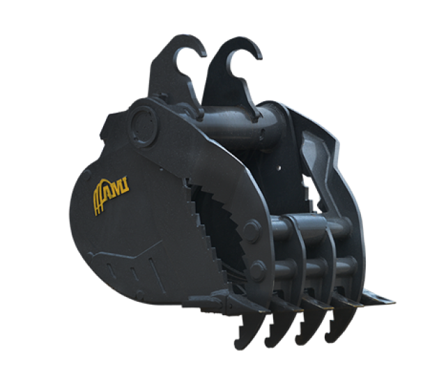 Built into the AMI Grapple Bucket is a rotary actuated thumb, allowing full bucket rotation without losing grip of your load.