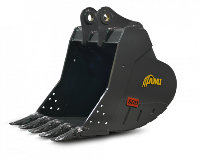 With thicker AR400 wear steel in all wear areas including base edge, side cutter plates, larger cheek plates, horizontal wear bars this bucket is built for severe duty, higher abrasion conditions. Featuring a standard dual radius profile in floor and heel of bucket for maximum wear and performance. Various ground engaging hardware available.