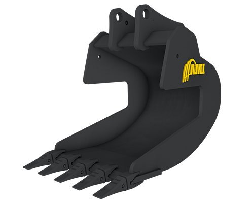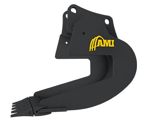 The AMI Slab Bucket for excavators and loader backhoes allows for efficient handling and maneuvering of blocks, concrete chunks, stone, and broken concrete. Ideal for sidewalks, pavement, and construction and demolition sites, the Slab Bucket features teeth for digging under stone slabs and a cut out endplate design for easy pick up and load retention.