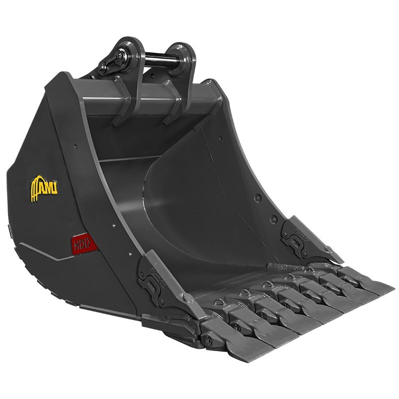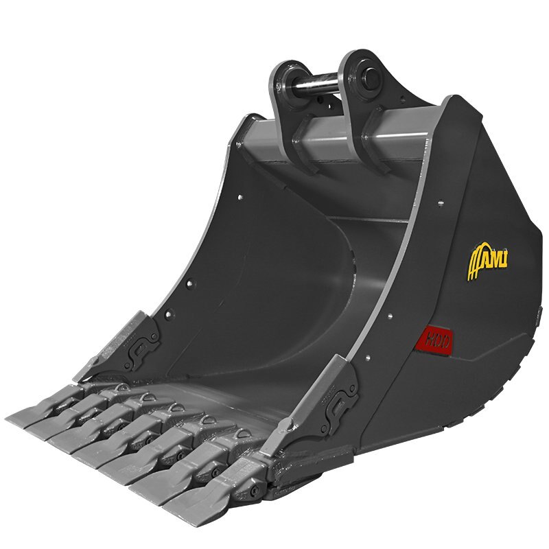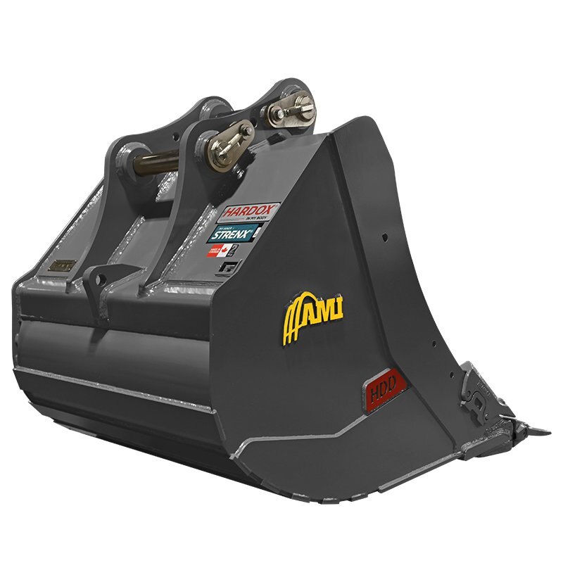 Featuring a standard dual radius profile in floor and heel of bucket for maximum wear and performance, the AMI Heavy Duty Digging Bucket is built for heavy duty excavation and features the spade tooth design. Various ground engaging hardware available.