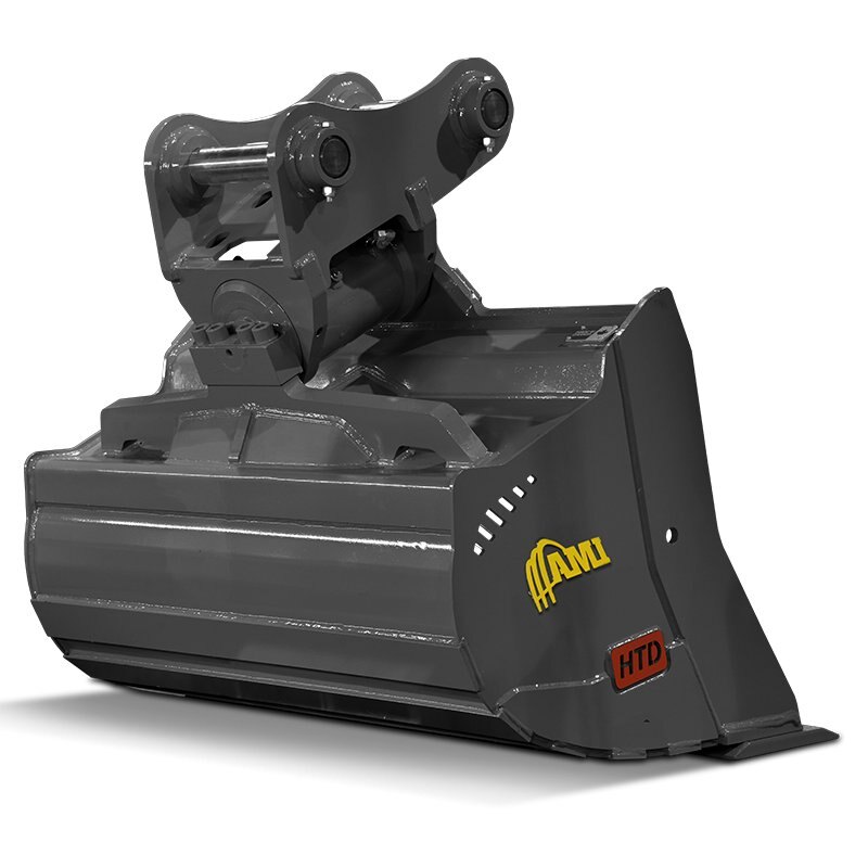 Achieve greater flexibility with AMI Attachments' Rotary Tilt Ditch Cleaning Bucket. Designed specifically to reach those awkward spots with less repositioning, AMI Rotary Tilt Ditch Cleaning Buckets allow for level grading on uneven terrain, provide a smooth tilting action and are designed with no exposed cylinders or hoses. On 25-75 series excavators, the tilting range is 180-degrees. For excavator series 130-400, the tilt range is 120-degrees.