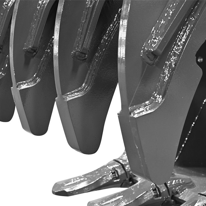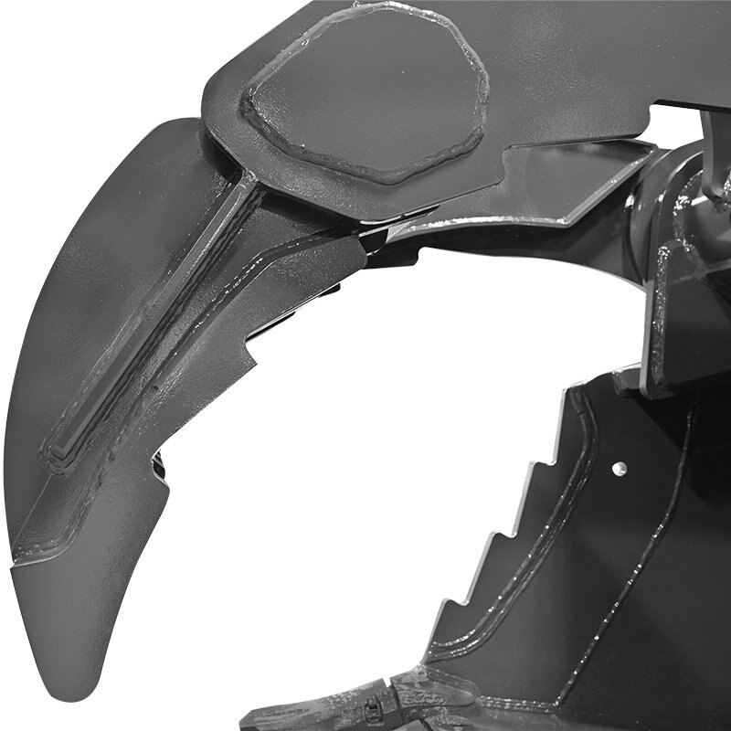 When it’s demo day, look no further than the Graptor Demolition Bucket to take on the task at hand! The Graptor Demolition Bucket combines the versatility and precision of the Graptor Bucket with an extra level of strength for demolition applications. This bucket features a Hardox® 500 wear package and replaceable thumb for increased wear performance. For increased durability, replaceable weld-on teeth come standard on the bucket. Weld-on adaptors plus teeth are available as an alternate option. US patents 10,774,498 and 10,774,501.