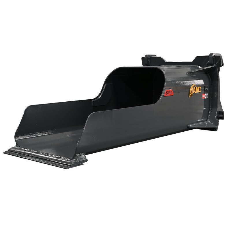 The AMI Spoon Bucket produces a controlled flow when handling gravel or loose material and backfilling manholes. The bucket's design allows for extra precision for material placement, especially when needing to reach difficult or tight places.