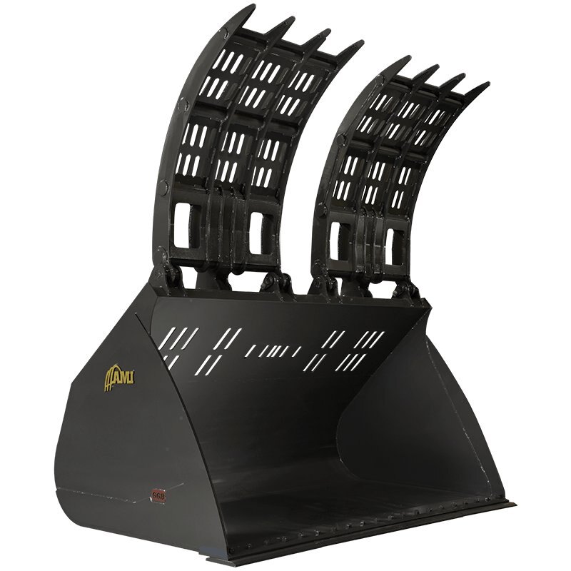 Large, semi-enclosed grapples contain and compress small, light material, making it easier to transfer and manage waste without spillage.