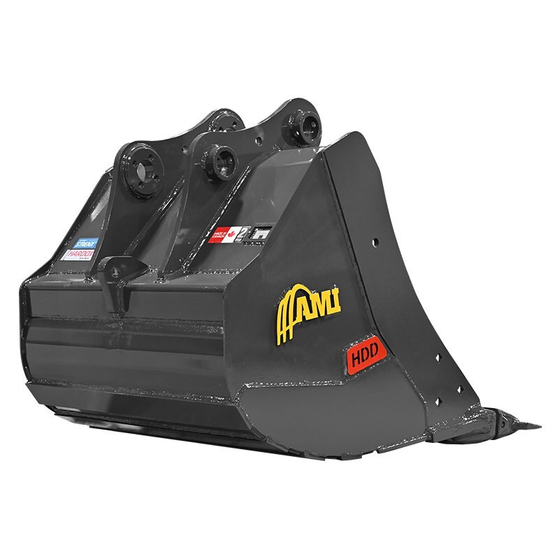 Featuring a standard dual radius profile in floor and heel of bucket for maximum wear and performance, the AMI Heavy Duty Digging Bucket is built for heavy duty excavation and features the spade tooth design. Various ground engaging hardware available.