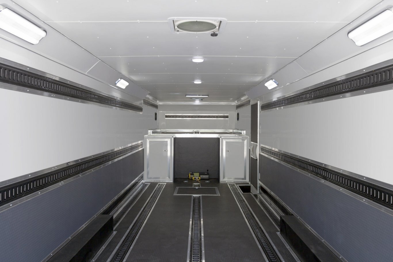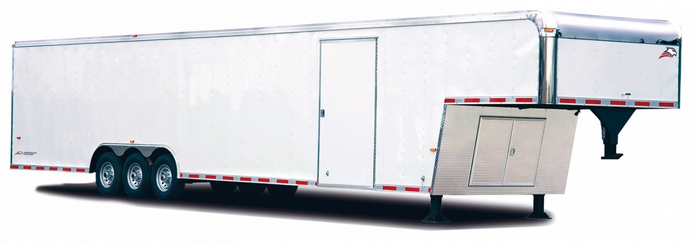 The Silver Hawk is our top of the line Gooseneck Race trailer. The bold stainless front corner wraps, coupled with the polished cast corners and stainless top wrap give this trailer a bold eye-catching look for the race tracks or highway.