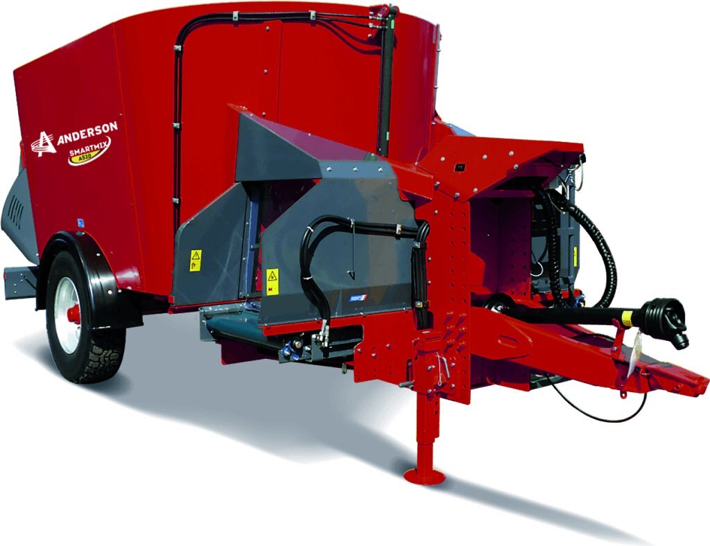 | The Anderson pull type A520 twin auger mixer (conveyor discharge) has the ability to mix the widest variety of ingredients. Process large amount of hay, even complete square and round bales of baleage. Available with several discharge options. Whether your rations are designed to increase milk production of dairy cows or minimize variation in feed for each group you feed, vertical mixer will help optimize the dry matter and nutrient intake of your herd. |