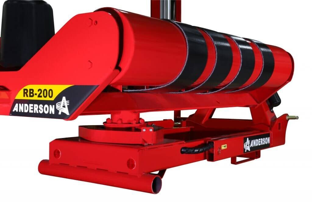 2. Table with seamless belts allowing each type of bales to rotate and be wrapped evenly. The unloading system RB200 differs from the competition in the stability of its table. While other products on the market will tend to twist and turn when they unload, the Anderson RB200 keeps the table hydraulically in a stable position for the bale to be unloaded in a straight line.