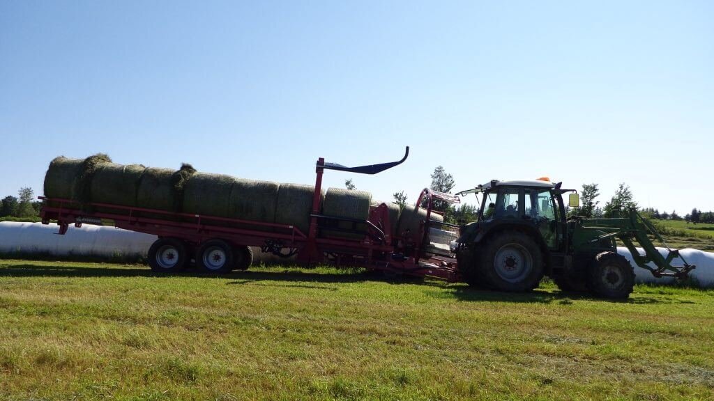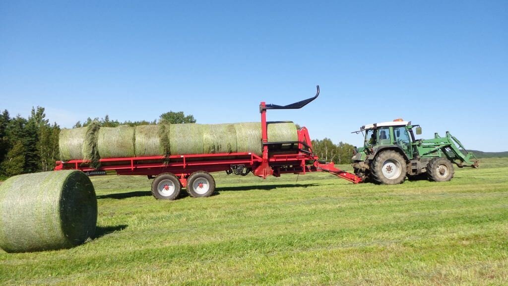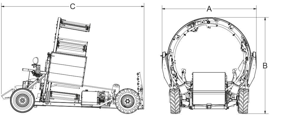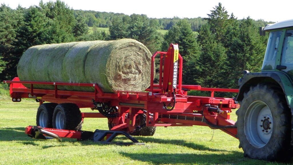 | The high-performance WRAPTOR™ is the combination of a self-loading trailer and an in-line wrapper. When labor is hard to fi nd or you need to do things quickly, this all-in-one system allows you to do the transportation and wrapping with only one operator and one tractor. The WRAPTOR™ is the ultimate system for loading, transporting and wrapping. Designed for collecting wet or dry hay, it offers the fastest performance on the market.The trailer collects and transports 14 bales (4 ft × 4 ft.) at a time and attaches to the wrapper without additional equipment. The remote control offers the possibility to do everything from the seat of the tractor. |