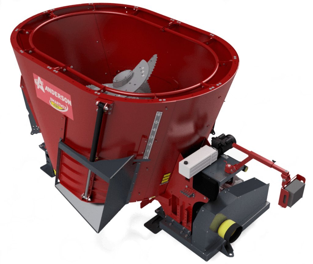 The Anderson S280ST single auger mixers (side trap discharge) have been developed for farms where the footprint of the machines is an important factor. These mixers are compact. These low tubs easily find their place on farms with low ceilings.