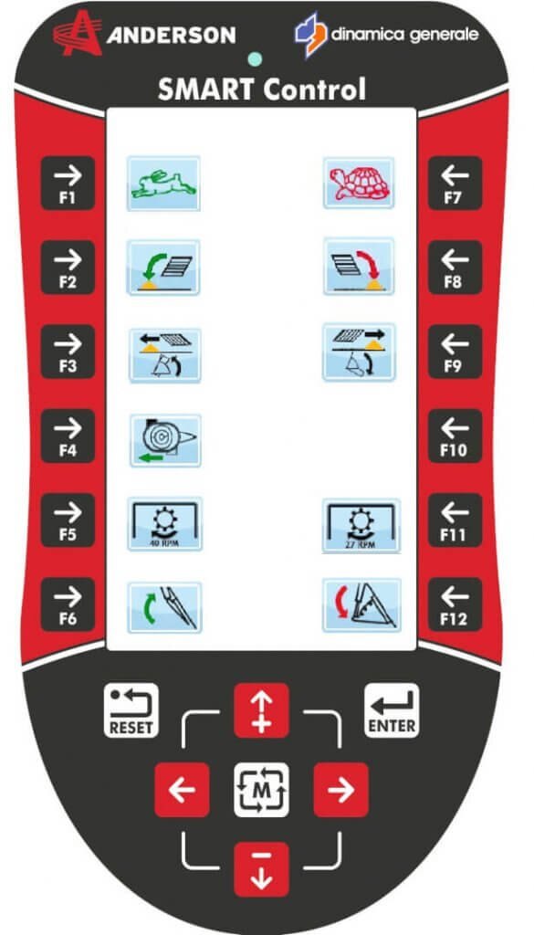 1. Capacity 953 pi3 à 1 212 pi3. 2.Reinforced tub fl oor provides longevity of the tub and also to the load cells by equalizing the weight uniformly. 3.TRI-CUT™, auger with 2-position adjustable and reversible knives (10 standard) and 2 sweeping dispensers ensuring a 30% faster and more consistent discharge. 4.Discharge options: Side trap or front conveyor. 5.Carbide treated self-sharpening tungsten knives. 6.Industry’s fi rst hydraulic TRUE-CUT™ restrictor blades allows the operator to engage and disengage during the mixing process preventing all risks of overprocessing feed. 7.The DG500 indicator is a universal, programmable weighing indicator for recipes, dispensing and data storage. It guarantees an extremely precise weighing thanks to the protected load cells and strategically located under the tank. Compatible with the DTM suite. 8.3-point scale system. 9.Rolled side walls (not bent) for better fl ow of material, avoiding restriction around auger and naturally increased sturdiness. 10.SMART CONTROL remote control (optional) provides you full wireless control to: customize weighing system and recipe, hydraulics, speed of belt etc. 11.Optional 2 speed gearbox.