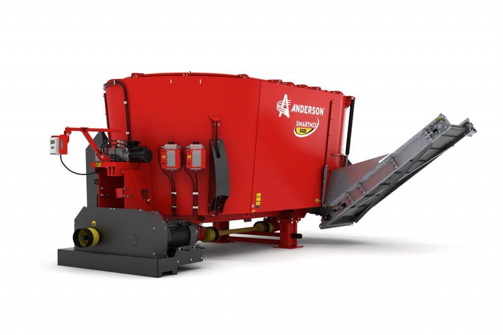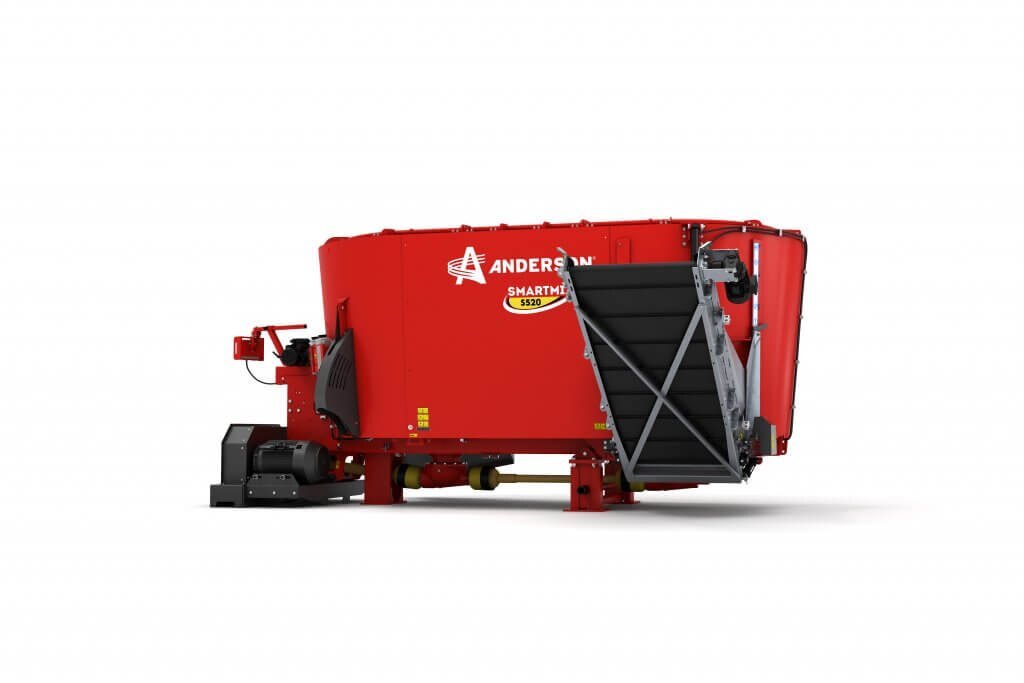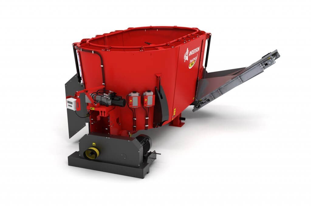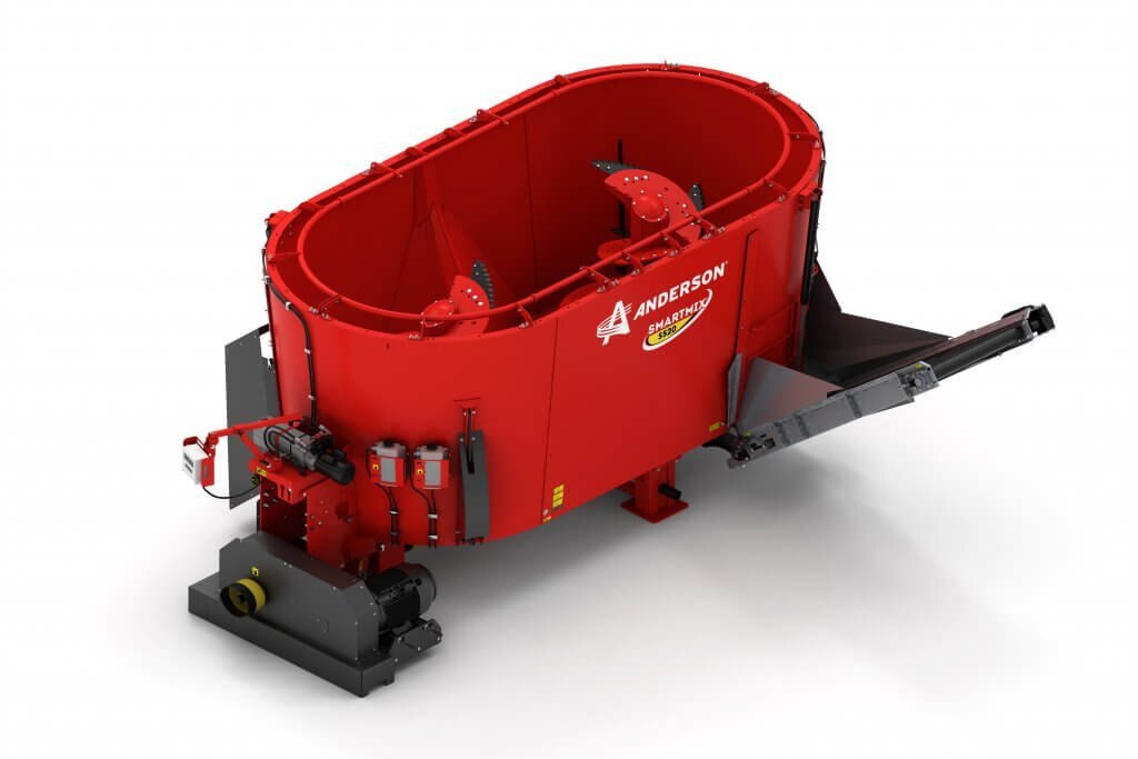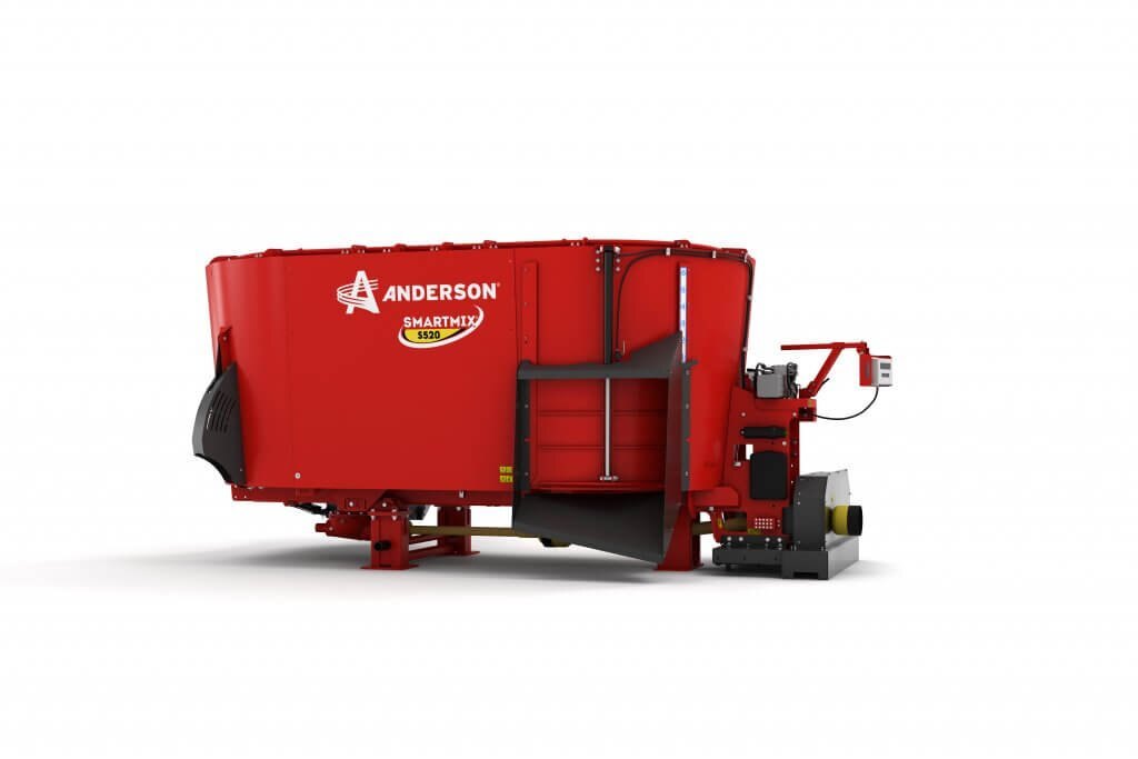 The Anderson stationary type S520ST twin auger mixer (side trap discharge) has the ability to mix the widest variety of ingredients. Process large amount of hay, even complete square and round bales of baleage. Whether your rations are designed to increase milk production of dairy cows or minimize variation in feed for each group you feed, vertical mixer will help optimize the dry matter and nutrient intake of your herd.