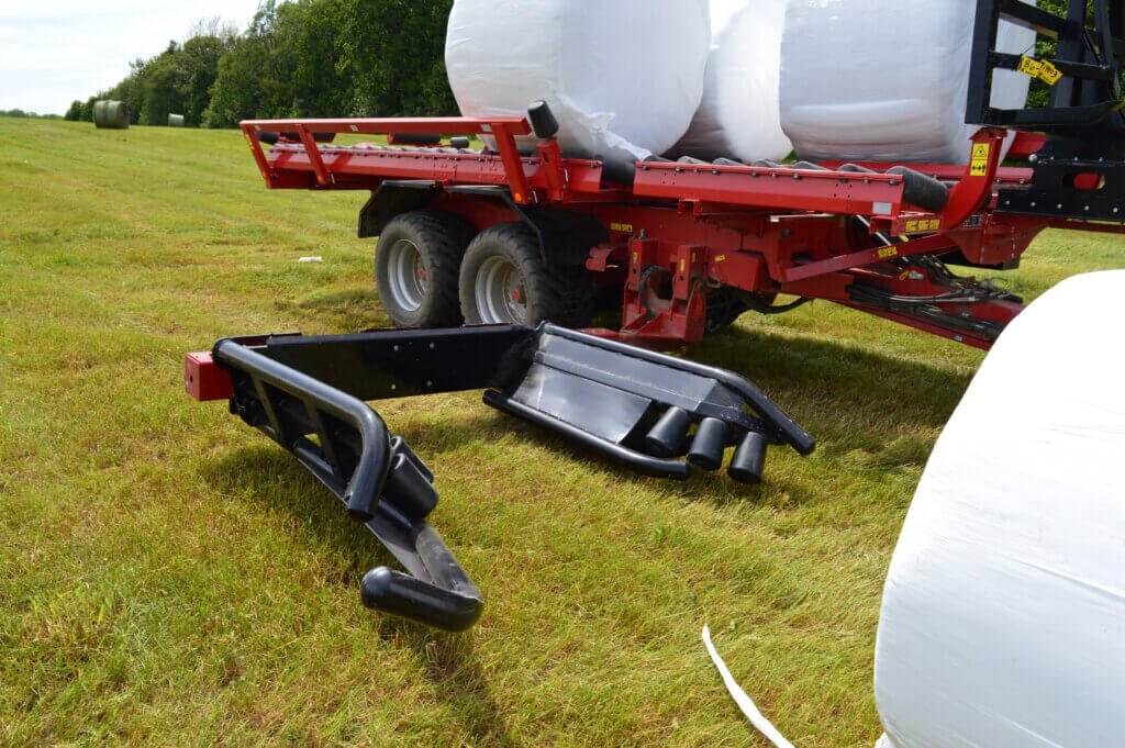 RBMPRO LITE 1400 (14 round bale) has a different pickup arm than the standard RBMPRO version, no automated sequence (no computer), only picks up wrapped bales from one side and unwrapped bales from all the sides). 5′ bales only