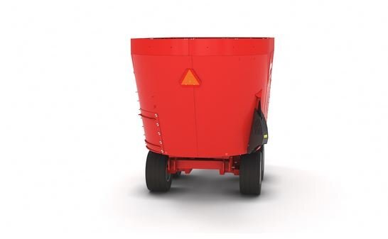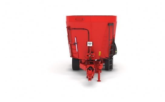 Twin auger vertical TMR mixer. Capacity 920 ft3 (26.1 m3) to 1172 ft3 (33.2 m3). Height of 122 in (3.1 m) to 140 in (3.56 m) with extension. 2 augers with 8 reversible knives each in carbide tungsten (12 knives per auger, optional)