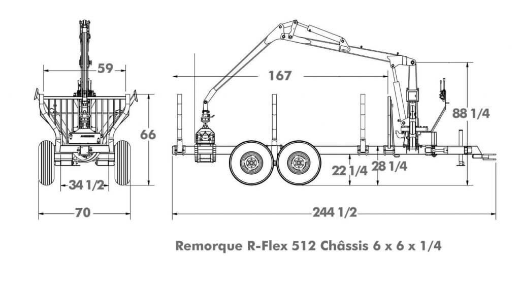 1. Hydraulic winch 1 speed (6500 lb) with steel cable 150' × 3/8" diameter (45.7 m × 9 mm) 2. Circuit control with joysticks 3. 360 degree rotation grapple 4. Articulated draw bar for improved maneuverability in tight areas 5. 13 HP Honda power unit