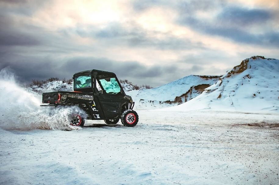 | • 976cc V-Twin Engine • Half Doors (included) • Tempered glass front & rear windshield (included) • 3500lb Winch (included) • Front & Rear Bumper (included) • LED lighting and Turn signals (included) • Roof with Light Bar(included) • Under seat storage box (included) • Piggyback Adjustable Gas Shocks (included) • Beadlock Wheels (included) • 3 year manufacturer warranty (included) |