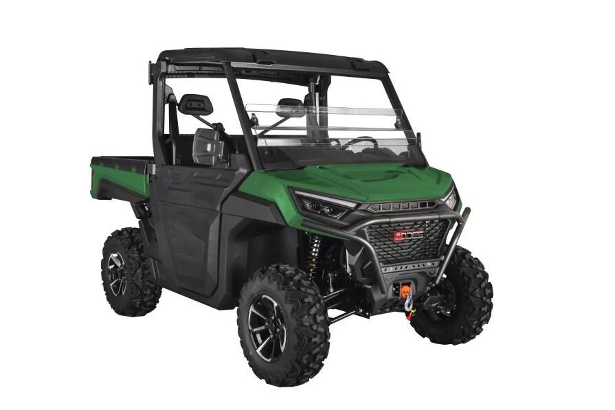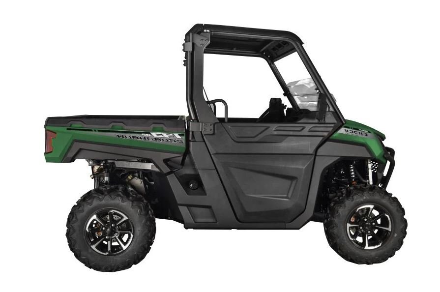 | • 976cc V-Twin Engine • Half Doors (included) • Tempered glass front & rear windshield (included) • 3500lb Winch (included) • Front & Rear Bumper (included) • LED lighting and Turn signals (included) • Roof with Light Bar(included) • Under seat storage box (included) • Piggyback Adjustable Gas Shocks (included) • Beadlock Wheels (included) • 3 year manufacturer warranty (included) |