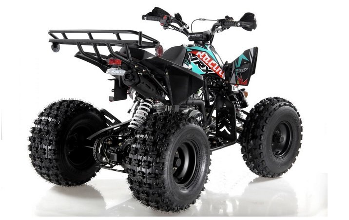 | It is equipped with a quiet and economical YTX 125cc 4-stroke engine and a 3-speed semi-automatic gearbox, neutral and recoil. Thanks to its ajustable speed. it's unstoppable stability and its semi-automatic gearbox, this quad ensures a real safety without compromising the pleasure of driving an all-terrain vehicle. |