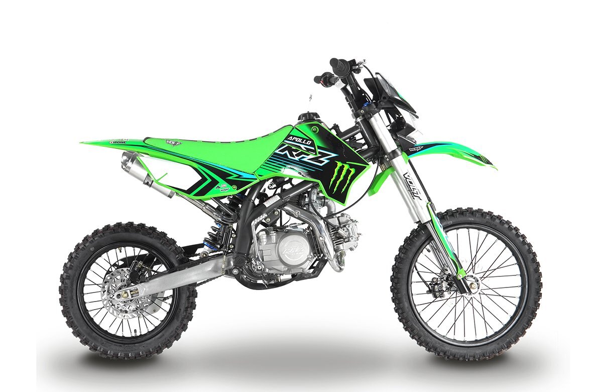 Very well suspended this Pit Bike is equipped with VOLT suspensions developed by Apollo Motors: Inverted hydraulic fork and gas hydraulic shock absorber.