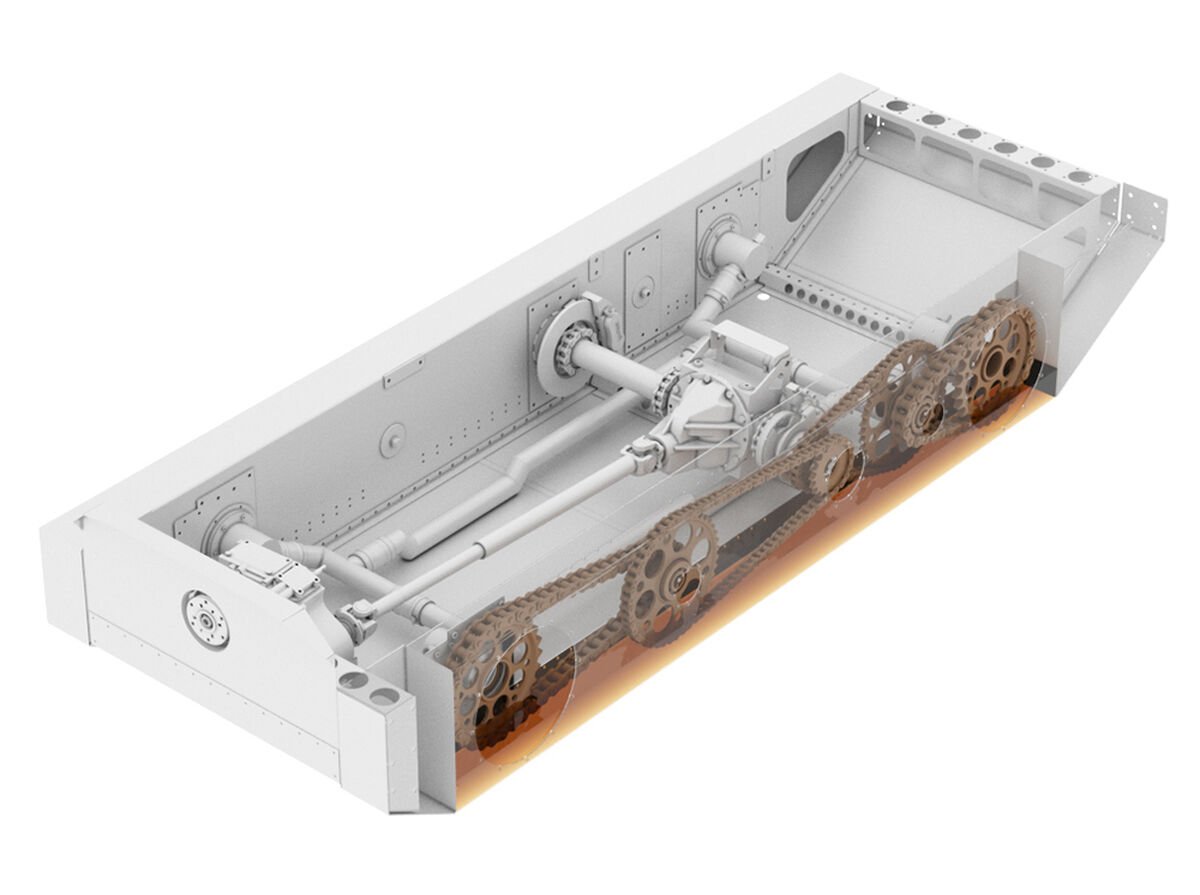 Unlike hydraulic motors and belt drives, a unique experience of using gears and oil bath chains help to avoid slippage and sticking on any terrain when the vehicle is being driven in extreme conditions.