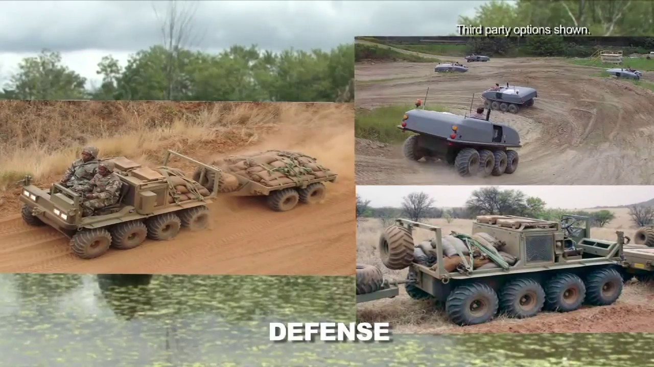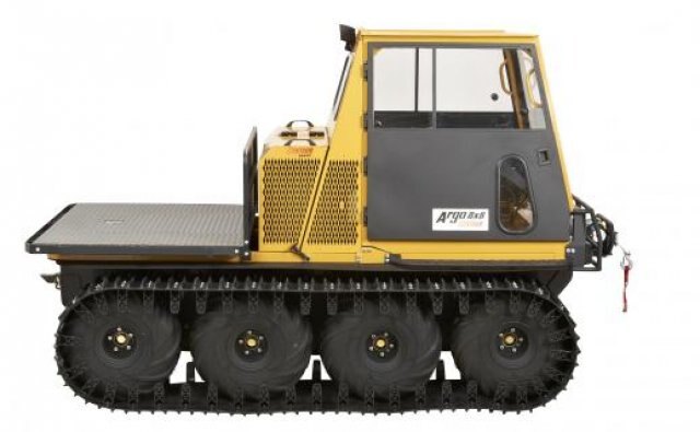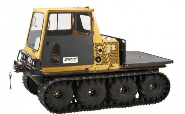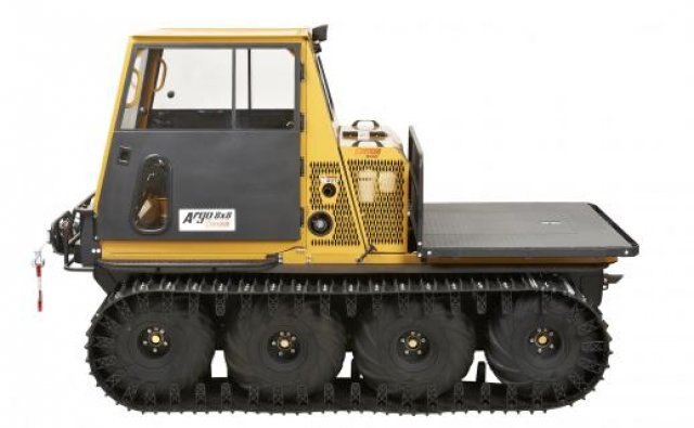 This 8-wheel-drive off-road vehicle is powered by a 952 cc (58 cu. In.) liquid-cooled, 3-cylinder Briggs and Stratton Daihatsu Turbo-Charged diesel engine. The engine provides 34 hp (25.3 kW) and 58 lb. ft. of torque to the Centaurmatic dual-differential two-speed transmission. It has a load capacity of up to 2,000 lb. / 907 kg, transports up to 2 people, and tow trailers with a capacity of 2,200 lb. / 998 kg. |