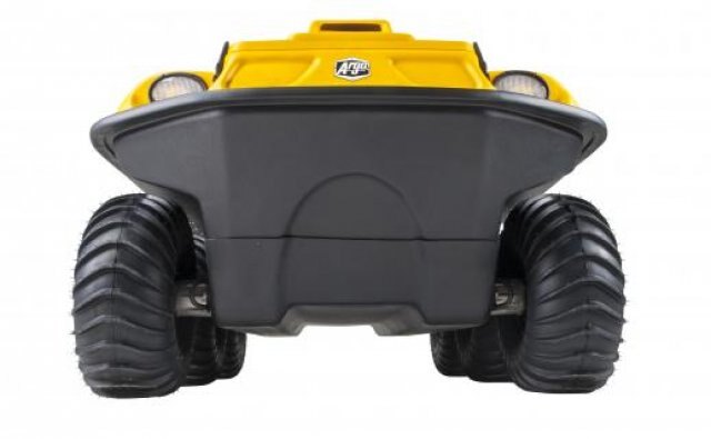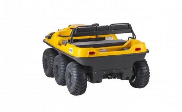 This 6-wheel drive amphibious off-road vehicle is powered by a 4 stroke OHV V-Twin air cooled 627cc, 23hp (16 kW) Briggs & Stratton “Cooler Cleaner” engine. It has a load capacity of up to 700 lb. / 317 kg on land or 500 lb. / 227 kg on water, can transport 4 passengers on land, 2 on water and features a towing capacity of 1,400 lb. / 635 kg. Rear seat weight restriction of 140 lb. / 63 kg applies.