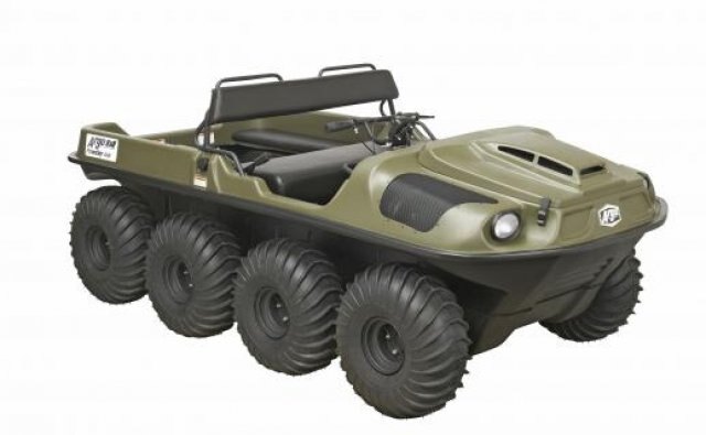 The most affordable ARGO 8x8 vehicle features great performance in difficult terrain and has excellent water crossing capabilities. Great load carrying capacity and powerful towing capabilities at an attractive price. Rubber tracks available for better traction in soft terrain or snow.